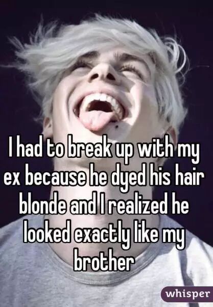 2. I had to break up with my ex because he dyed his hair blonde and I realized he looked exactly like my brother.