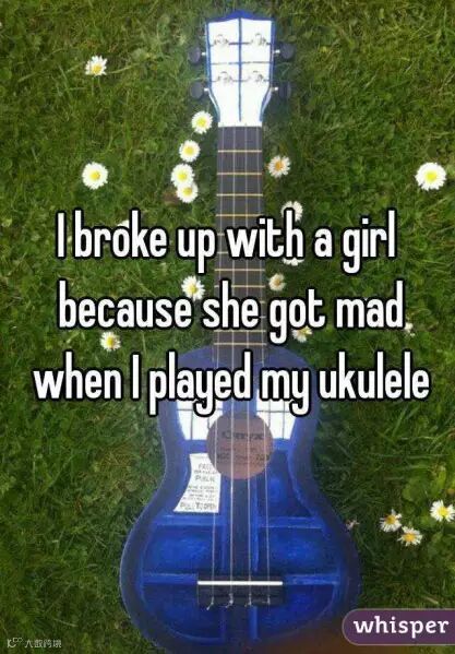 我和一个女孩分手,因为我弹尤克里里的时候她会很生气。