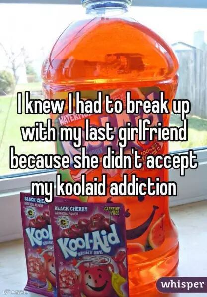 6. I knew I had to break up with my last girlfriend because she didn't accept my koolaid addiction.