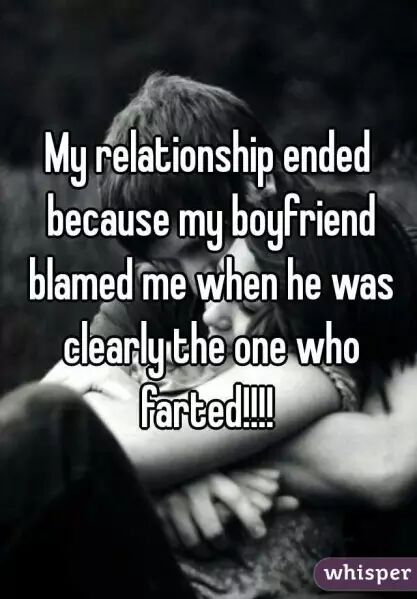 12. My relationship ended because my boyfriend blamed me when he was clearly the one who farted!