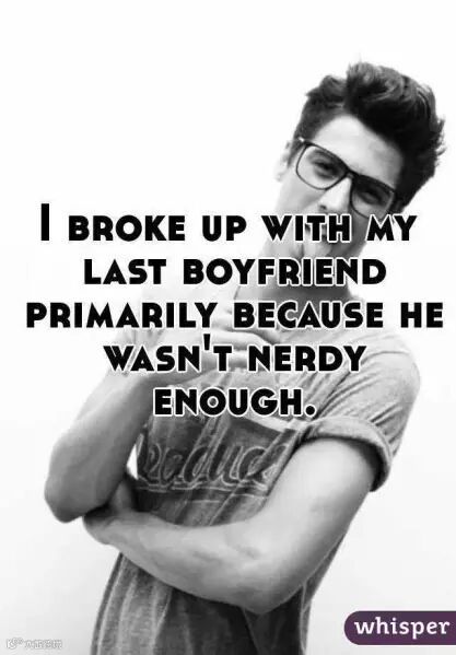 8. I broke up with my last boyfriend primarily because he wasn't nerdy enough.