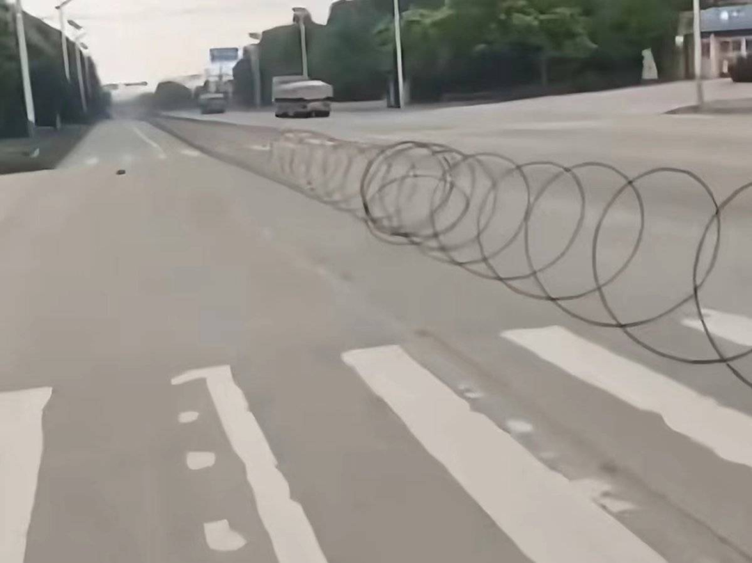 🚚在河北,一辆半挂车在运送钢丝时,钢丝从车上滑落,随着车辆的行驶,在后方绵延百米,好似在马路中间装上了一条隔离带。网友调侃:“好消息:货没丢;坏消息:比丢了还难受!”