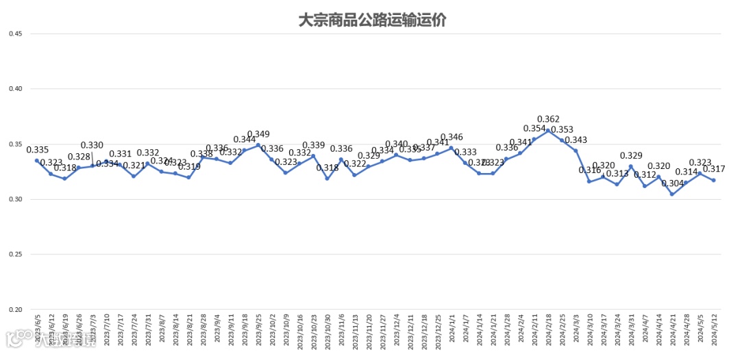 本周大宗商品公路运输运价为0.317元/吨公里,下跌1.86%。