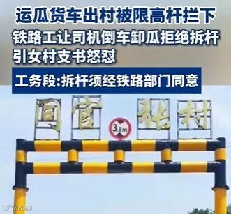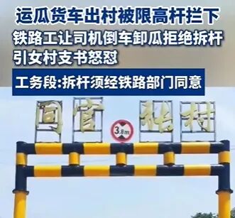 近日,在陕西咸阳,一货车出村时被限高杆挡住,铁路工让司机卸瓜,遭到了女村支书的怒怼!