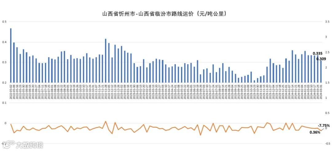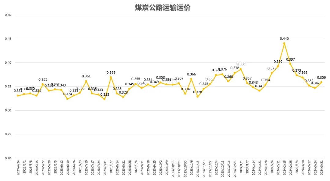 本周山西运输运价上涨的主要原因是4月1日起,大秦铁路开展为期30天的春季集中修施工。检修期间,公路替代效应显现。