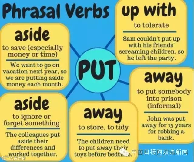 中国日报双语新闻今天双语君给大家分享5张常见英语动词搭配学习图,都是很简单的小词,你掌握了吗?