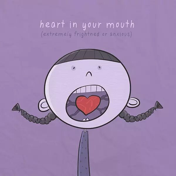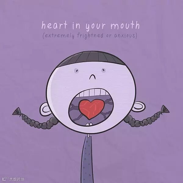 ▲Heart in your mouth 心脏都在嘴里了。中文说的“心提到了嗓子眼”。