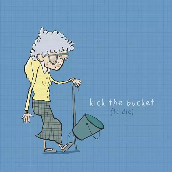 ▲Kick the bucket 踢水桶。古人行刑时脚下会垫水桶,把水桶踢掉,就代表着死亡的到来。(画面有点忧伤呢~)