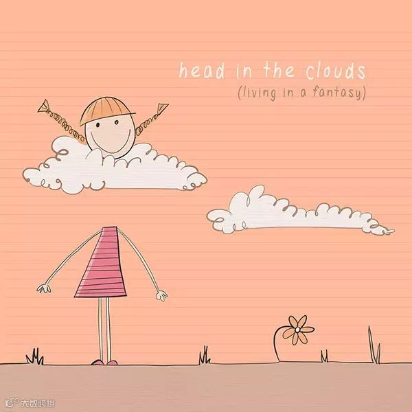 ▲ Head in the clouds 脑袋在云里,看到的全是迷迷蒙蒙的幻想世界。形容人心不在焉总在做白日梦,活在自己的幻想中。