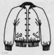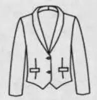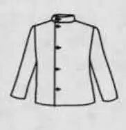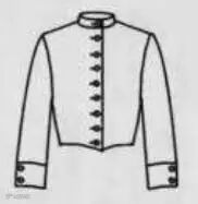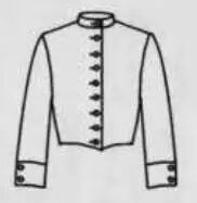 长度及腰,紧身剪裁,一般饰以铜纽扣(brass buttons)。