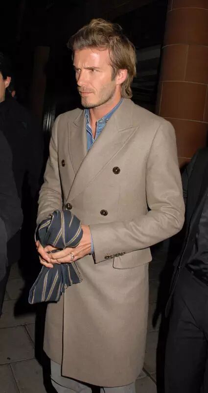 直筒型大衣(straight coat),单排或双排扣,大纽扣,高领,多为驼色(camel colored)。