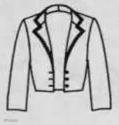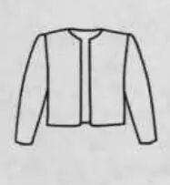 长度及腰(waist length)或在腰部以上(above the waist)的短外套,无领(collarless)、无扣(buttonless),可以长袖(long-sleeved)、短袖(short-sleeved)或无袖(sleeveless)。