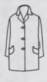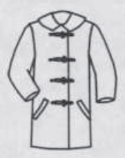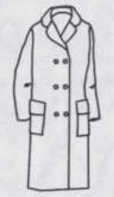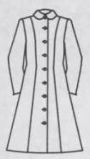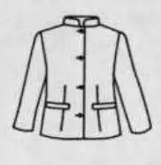 半修身(semi-fitted),单排或双排扣(single, or double-breasted),领子较高,多为柔软宽大的翻领。通常为暗门襟(fly front),纽扣隐蔽。