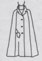 无腰身或半宽松剪裁,凹口大翻领,穿的时候一般只系上面一个纽扣。