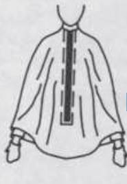 长方形或椭圆形斗篷,中间开洞,供头伸出,或有前领开口(front neck opening),和口袋。