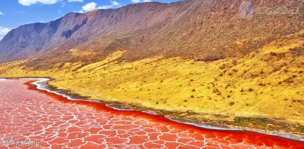 坦桑尼亚的纳特龙湖,随着水位变化,湖水颜色呈现白色、粉红色或豆绿色,浅水区往往是酒红色或咖啡色