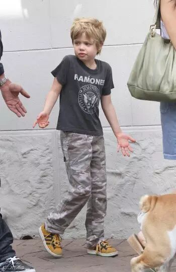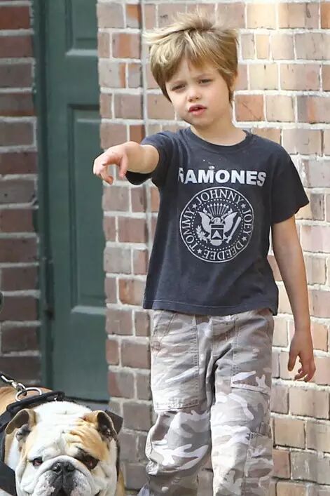 希洛从很小的时候就是个酷爱中性打扮的“假小子”。她喜欢穿运动装和T恤衫,总是把金发剪得短短的,甚至还想学老妈去纹身,曾因为这样,希洛还一度被奶奶强制换上女孩子的衣服,后因朱莉出面干预奶奶才作罢。年纪小小的希洛认为自己和哥哥们并无两样,所以每次出街都是酷酷哒,迷倒一众男女粉丝。