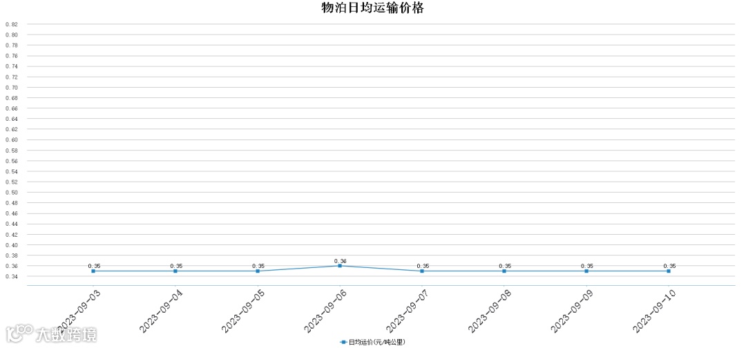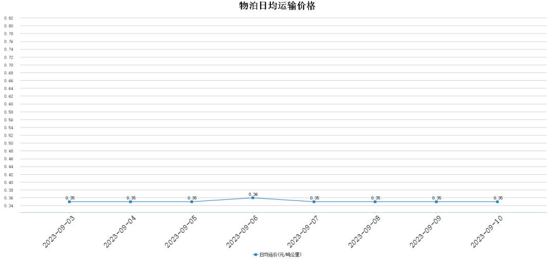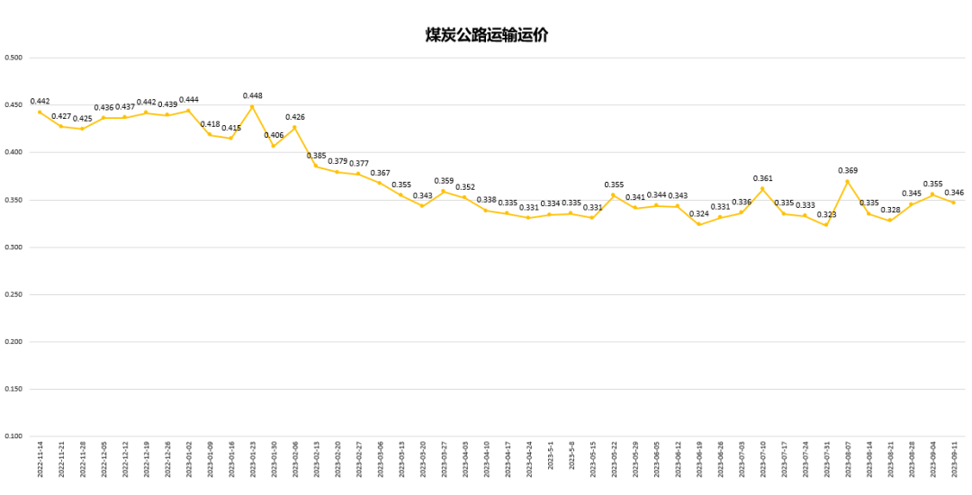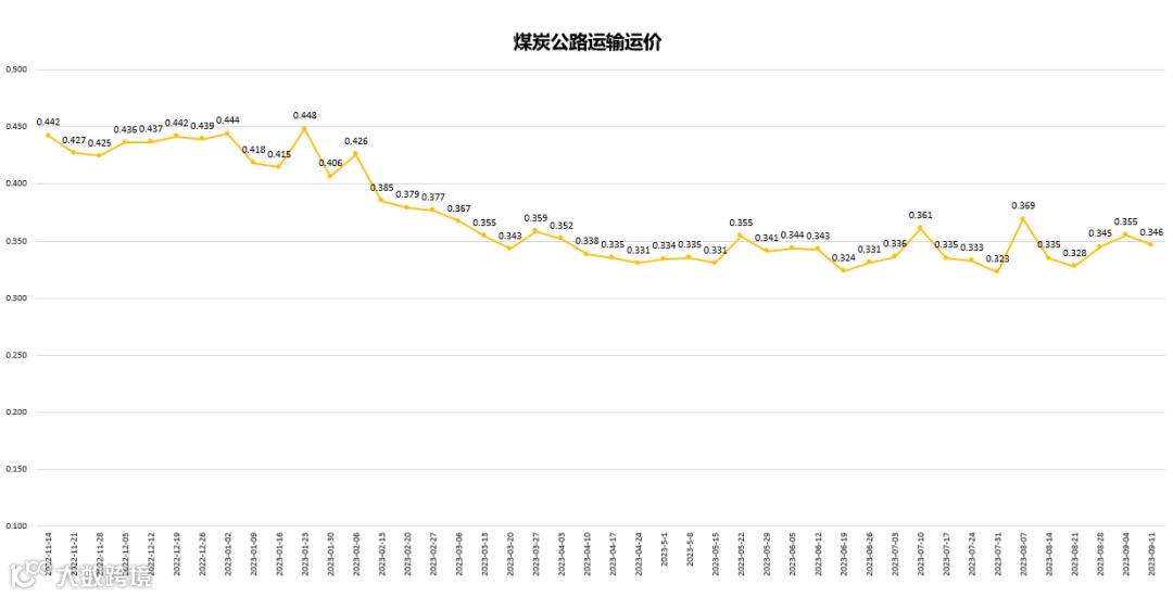 本周煤炭运输运价为0.346元/吨公里,较上周下跌了0.009元/吨公里,跌幅为2.54%。
