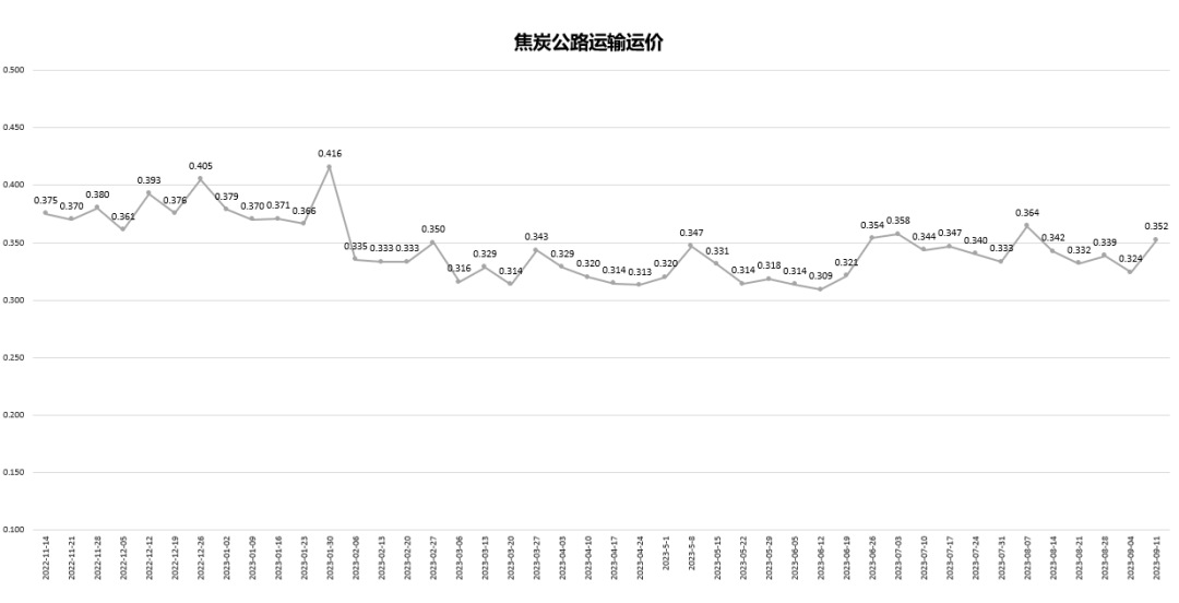 本周焦炭运输运价为0.352元/吨公里,较上周上涨了0.028元/吨公里,涨幅为8.64% 。