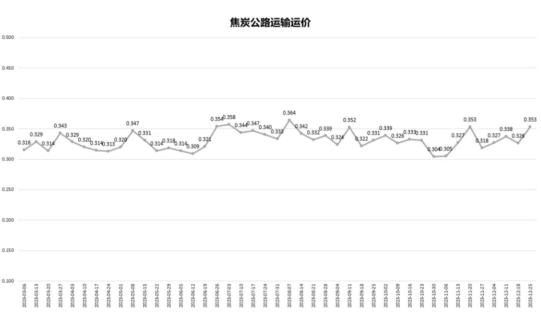 本周焦炭运输运价为0.353元/吨公里,较上周上涨了0.027元/吨公里,涨幅为8.28% 。