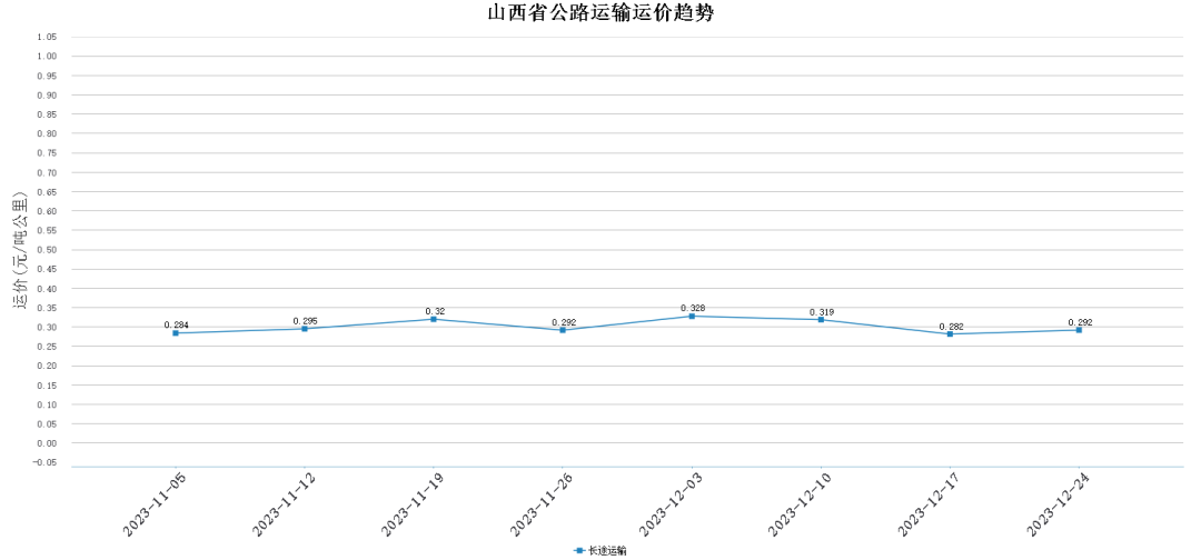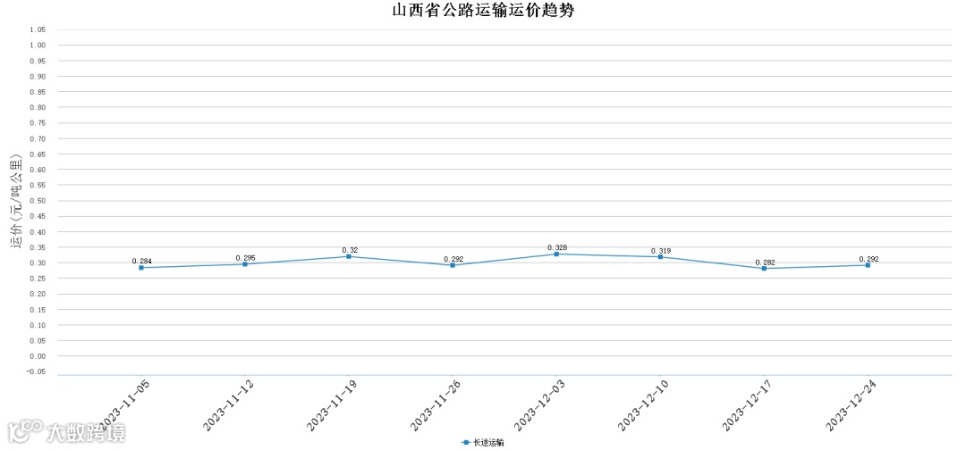 本周山西公路运输运价为0.292元/吨公里,较上周上涨0.02元/吨公里,涨幅为7.09%。