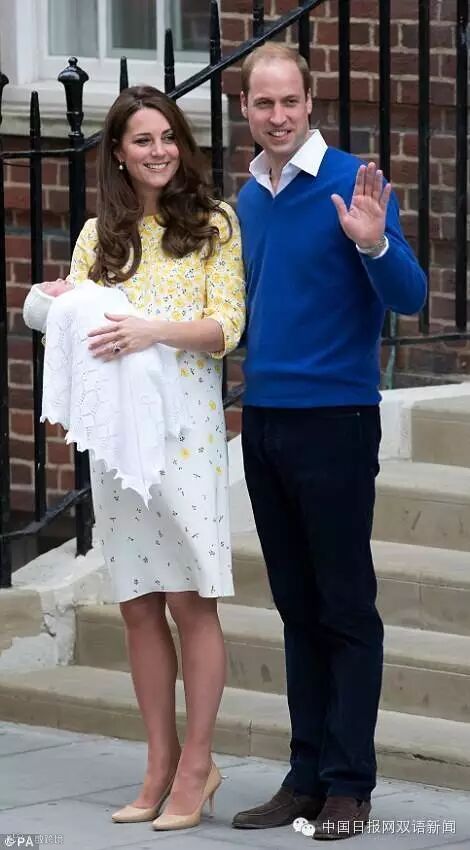 小公主裹在白色的毯子里,全程闭着眼睛,似乎在妈妈的怀里安静地睡觉。凯特穿着白底印黄色小花的连衣裙,精神看上去相当不错。她与威廉一同离开医院时在门前站了一会,向等候的民众和媒体人挥手问好。