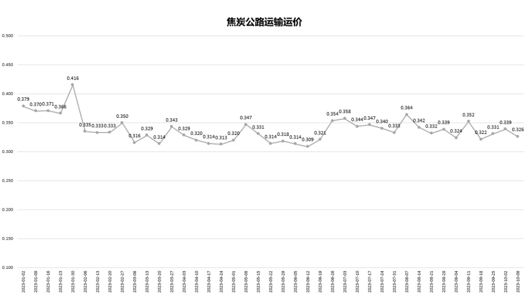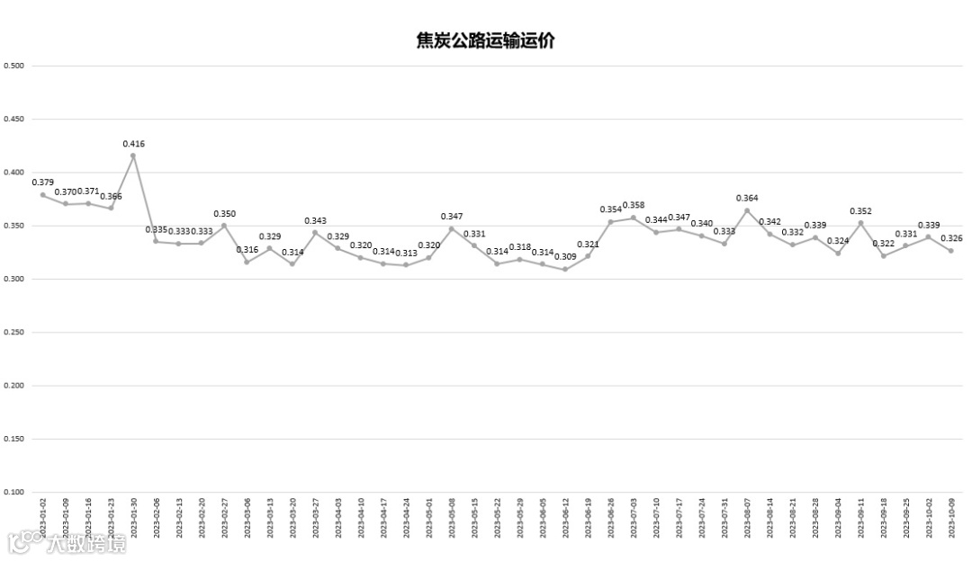 本周焦炭运输运价为0.326元/吨公里,较上周下跌了0.013元/吨公里,跌幅为3.84% 。