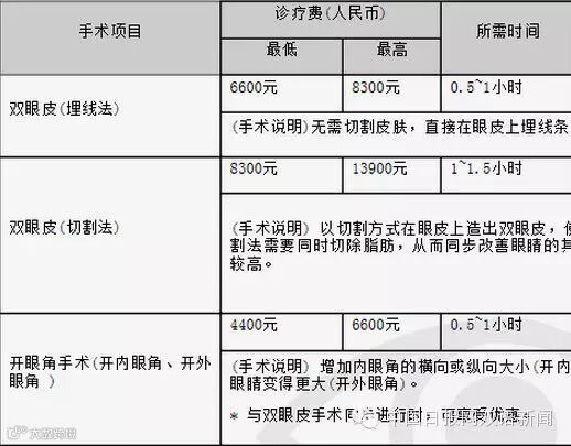 例如,双眼皮手术费用为120-150万韩元(约合人民币6732元-8415元)不等,手术时间为30分钟到1个小时,恢复时间为一周。