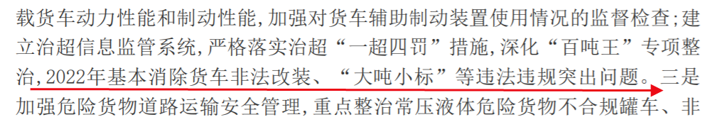 早在2020年国务院安委会印发的《全国安全生产专项整治三年行动计划》中曾提出,2022年基本消除货车非法改装、“大吨小标”等违法违规突出问题。