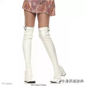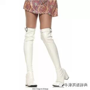 提起20世纪60年代,大家都会不约而同地想起那些高筒低跟、闪着白色光泽的go-go靴(戈戈舞鞋)。当时的女性经常将go-go靴与迷你超短裙搭配来穿(这一个时期大众也不认为穿bikini是什么不雅的事情了),go-go靴的得名来自形容词‘go-go’::与一种无拘无束、纵情声色的流行音乐舞蹈有关(’go-go dancer’是与’go-go’相关的另一个常用词汇)。Go-go一词可能受到了a gogo的影响,a gogo意指“大量的;丰富的”,来源于法语词汇à gogo。Go-go一词来源于古法语词汇gogue,意为“有趣的”。