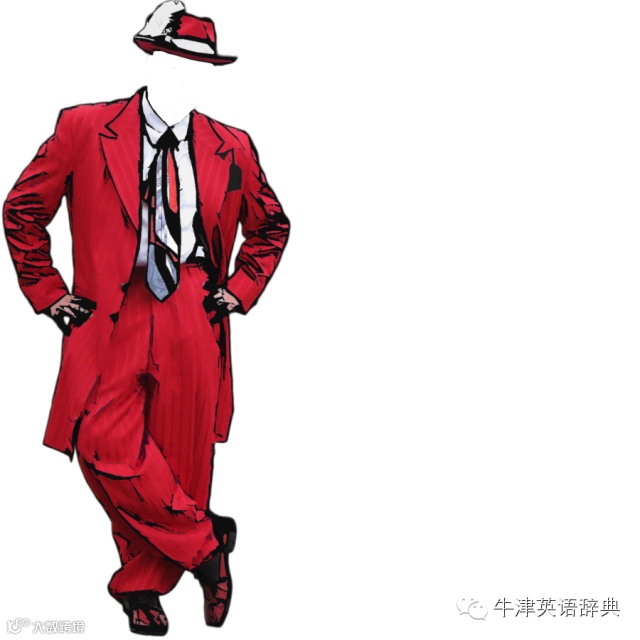 此外,我们不得不提一下zoot suit(阻特装)!虽然现在zoot suit主要用于万圣节的装扮。zoot suit特点是上衣过膝、宽肩、裤腿肥大而裤口狭窄,20世纪40年代曾一度流行。而有关zoot这个不寻常的词汇的起源争论颇多,但最靠谱的说法是为了与“suit”押韵而形成的一种形式。当然,这种肥大宽松的款式并不为当时的女性所青睐。相反,当时女性流行的服饰是wasp waist(蜂腰款)——这也是世界知名时装品牌Christian Dior所推崇的一种新潮流——当时的女性特别青睐这种服饰,因为它很好的勾勒了女性的身体轮廓:紧紧裹住女性的腰部,像极了黄蜂纤细的腰部,wasp waist因此而得名。