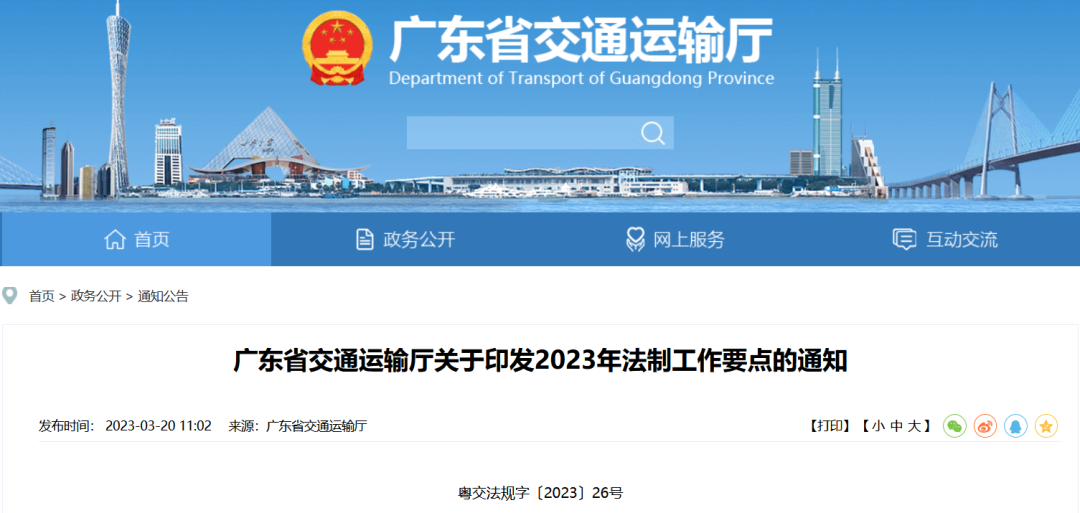 广东省交通厅印发2023年法制工作要点的通知,其中提到,进一步落实交通运输综合执法规范化长效机制: