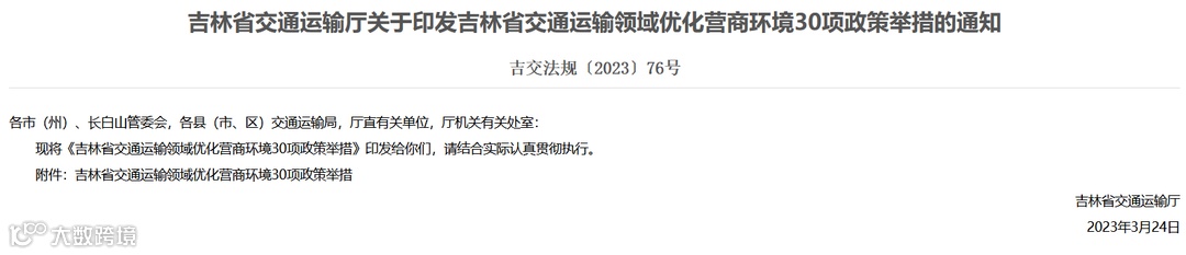 吉林省交通运输厅印发《吉林省交通运输领域优化营商环境30项政策举措》的通知,其中对处罚标准进行了调整。