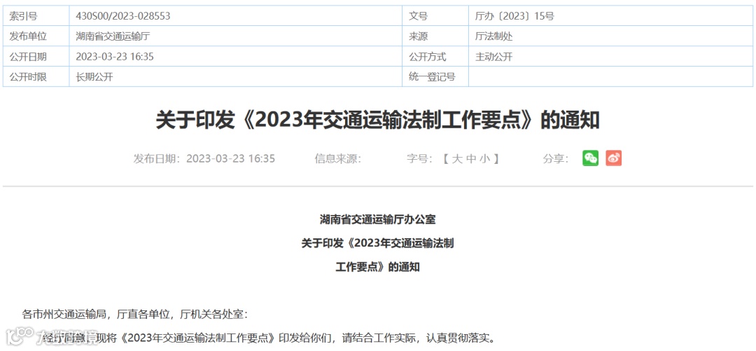 湖南省印发《2023年交通运输法制工作要点》的通知,要求强化综合执法监督,持续开展公路、水路“三乱”治理工作,组织开展全省执法人员抽考、案卷评查等执法监督检查工作。