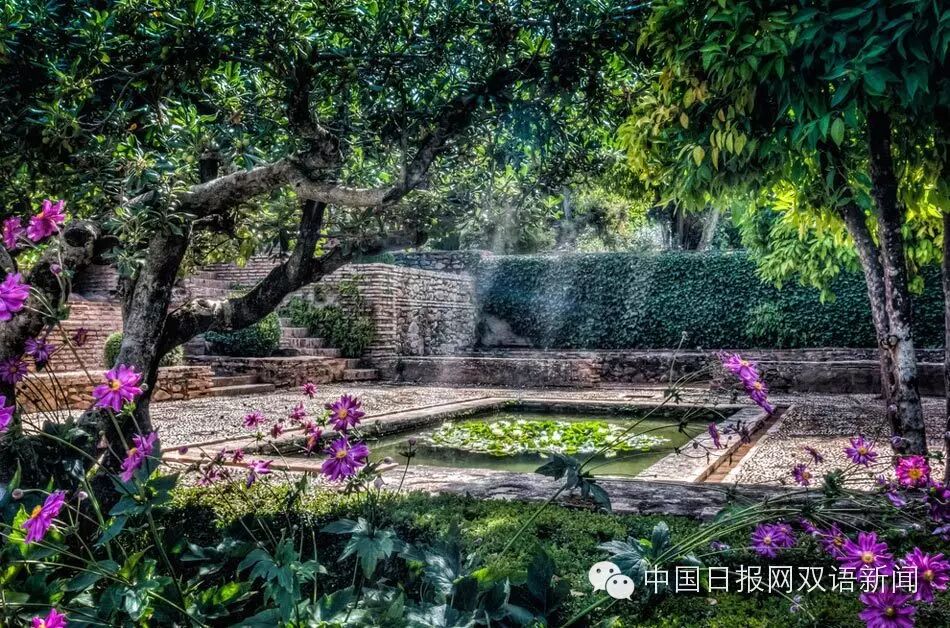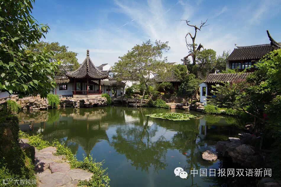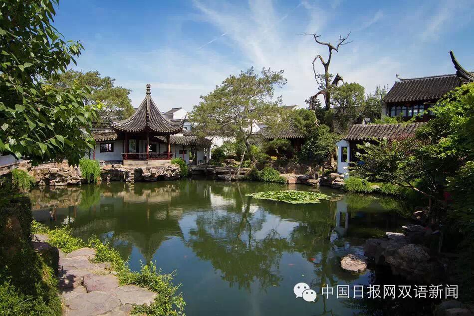 贴士:中国古典园林把建筑、艺术及大自然的池塘假山、树木花卉融为一体。你设计自家的花园时候,记得要注重家园和花园的和谐统一。