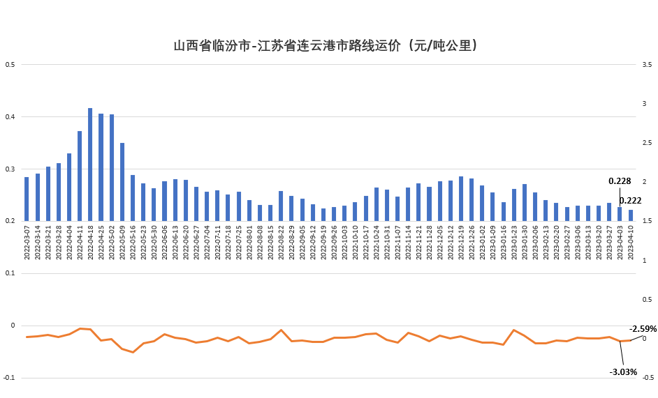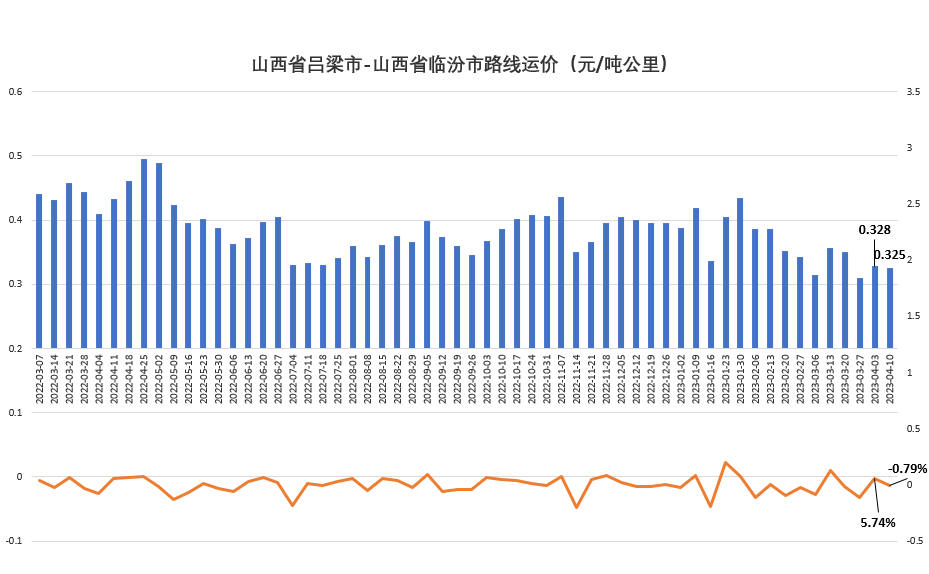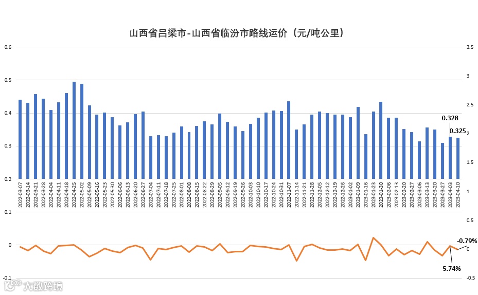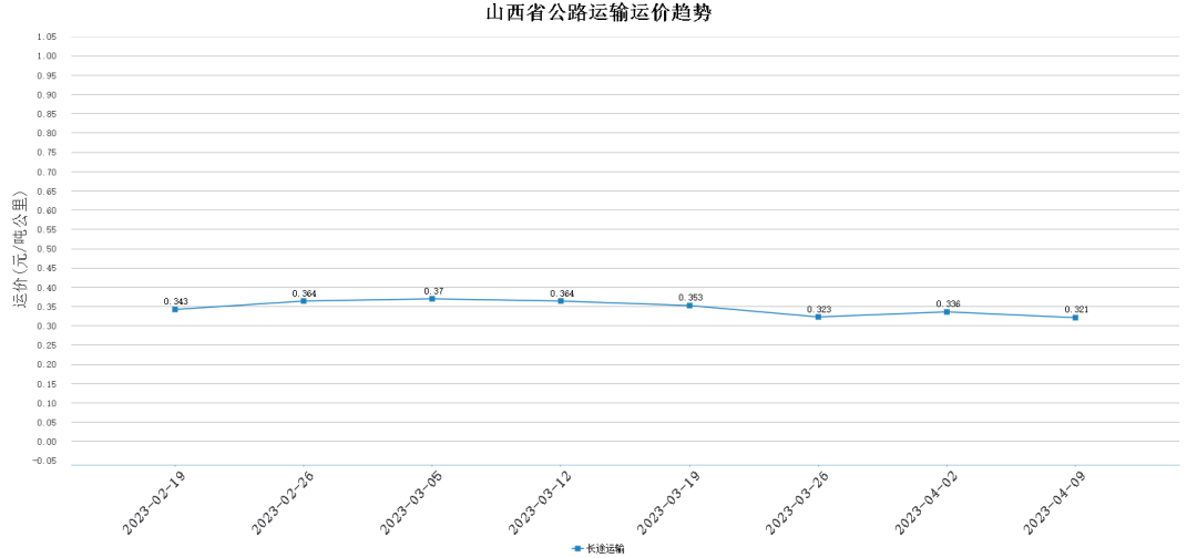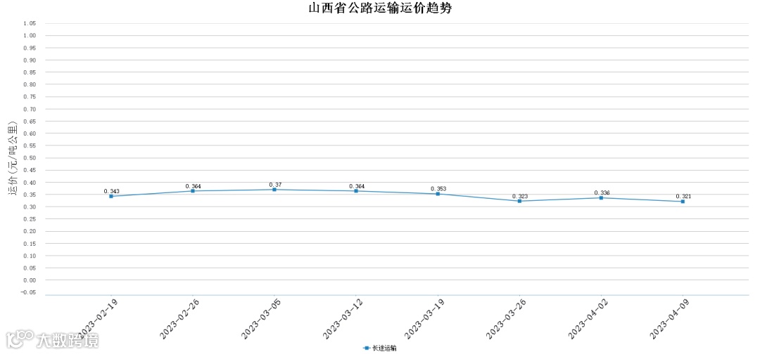 本周山西公路运输运价为0.321元/吨公里,较上周下跌了0.015元/吨公里,跌幅为4.46%。