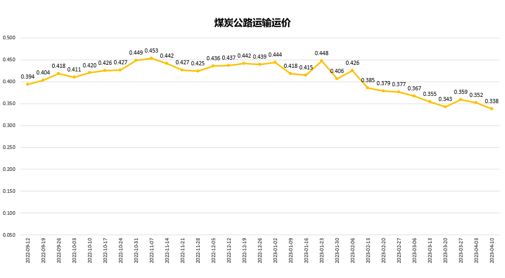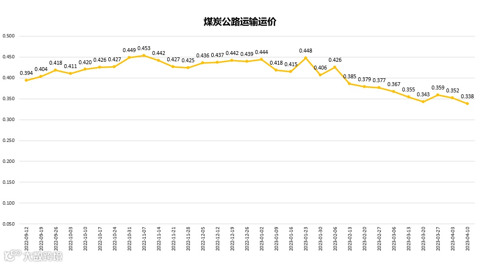 本周煤炭运输运价为0.338元/吨公里,较上周下跌了0.014元/吨公里,跌幅为3.98%。