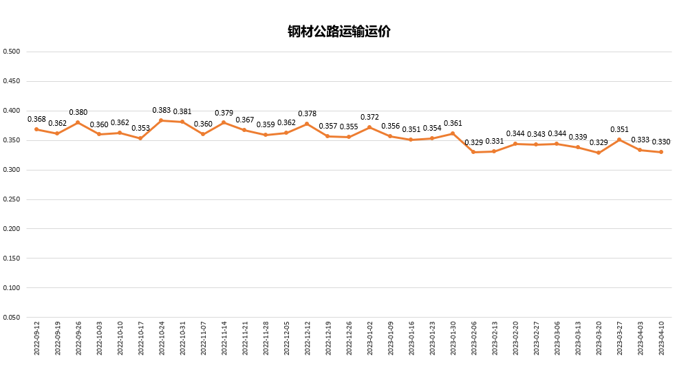 本周钢材价格下跌。从供应端来看,钢厂回到亏损边缘,部分区域已出现一定的减产迹象,加之限产政策出台传闻不断,供应后期或有一定的收紧预期。从需求端来看,由于大范围降雨天气和清明节假期影响,下游需求释放力度受到了一定制约,钢材成交有所回落,短期影响成交,汽运市场发运一般。故本周钢材运输运价下跌。