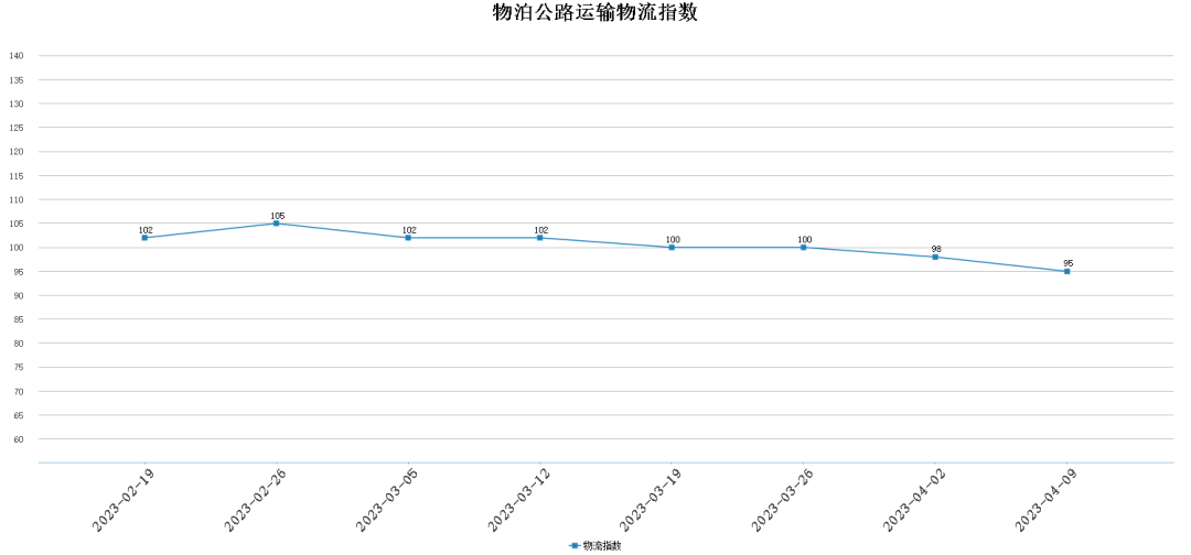 根据物泊科技数据显示,本周物泊公路运输物流指数为95,与上周比下跌3.06%。