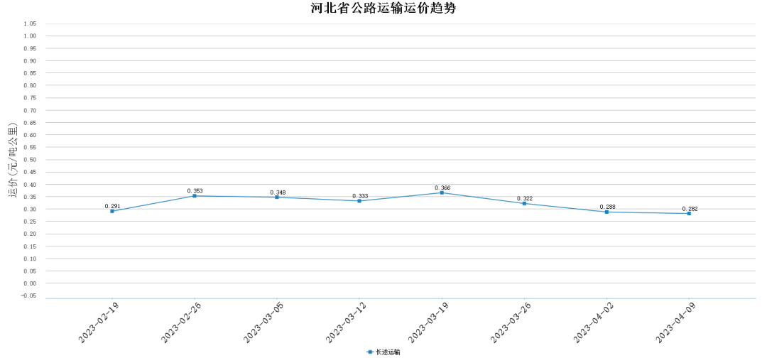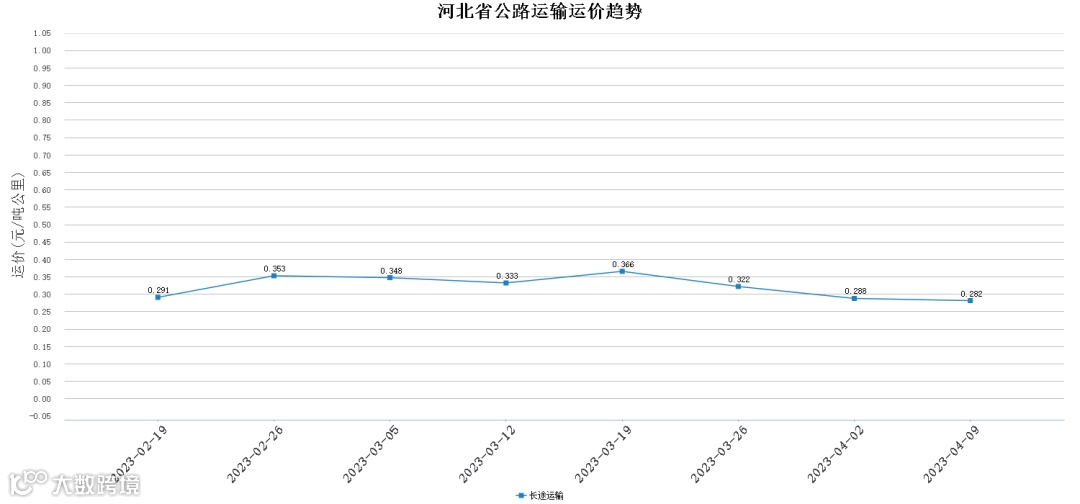 本周河北公路运输运价为0.282元/吨公里,较上周下跌了0.004/吨公里,跌幅为1.40%。