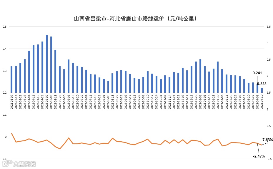 山西运输运价下跌的主要原因是随着气温回升,下游需求弱势,山西地区煤矿销售情况较为一般,汽运市场观望情绪浓厚。