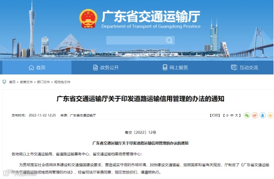 《广东省交通运输厅关于道路运输领域信用管理的办法》