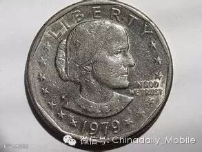 美国一元硬币的1979版,正面是苏珊.安东尼头像,背面是“阿波罗11”号飞船徽章。