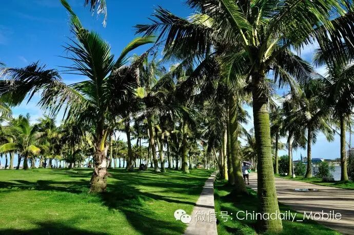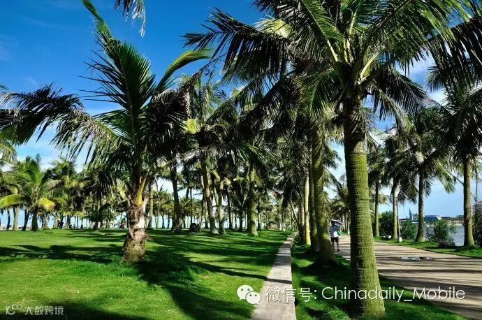 湛江观海长廊南起海淀路北至海洋路,全长约1.7公里,南区以紫荆广场为主,绿植种类丰富;中部有著名的观海台,站在上面可以尽收整个海湾美景;北部以海螺广场为主,种植着不同的棕榈植物,三个区各具特色但又都充满了亚热带风情。