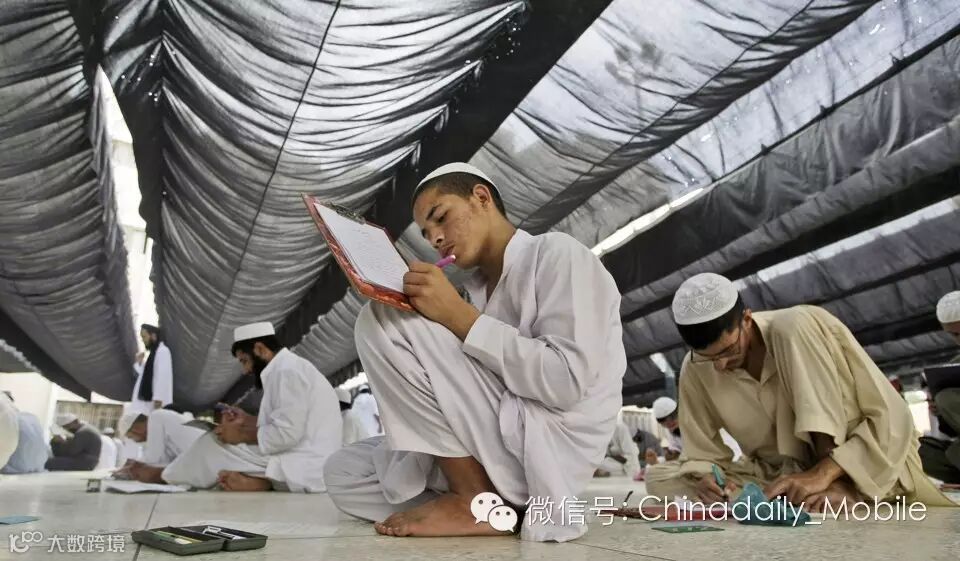 2013年6月8日,巴基斯坦卡拉奇一座伊斯兰神学院里的学生正在参加年度考试