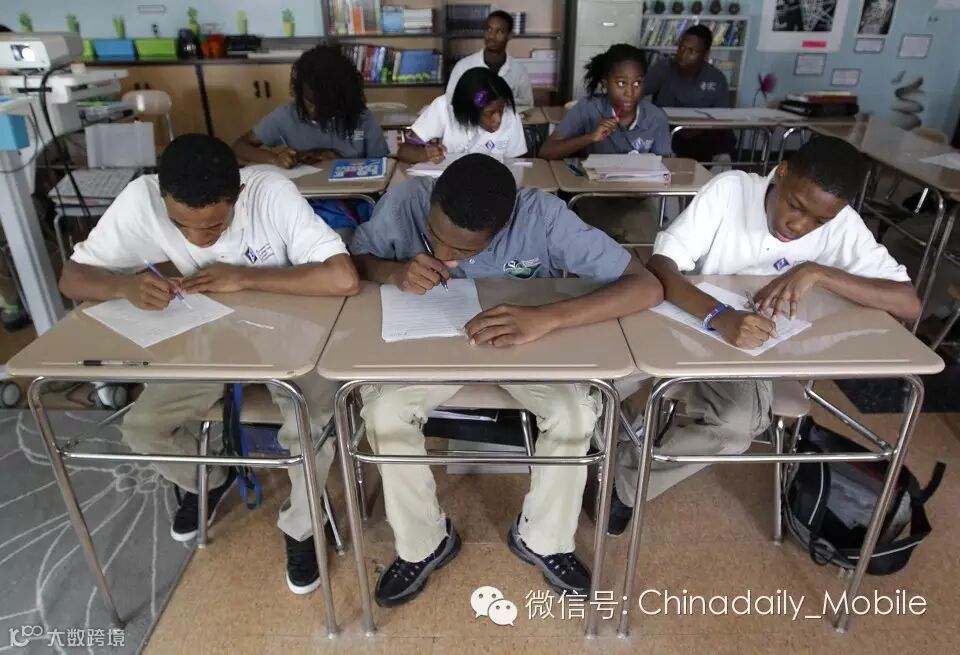 2012年5月1日,巴尔的摩Academy for College and Career Exploration的学生们正在大学先修课上记笔记。200万学生参加了大学先修(Advanced Placement)考试