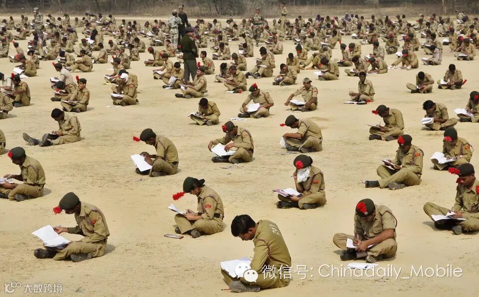 2012年2月5日印度阿拉哈巴德(Indian city of Allahabad),超过2000名士官生正在参加全国学生警察团(National Cadet Corps)考试