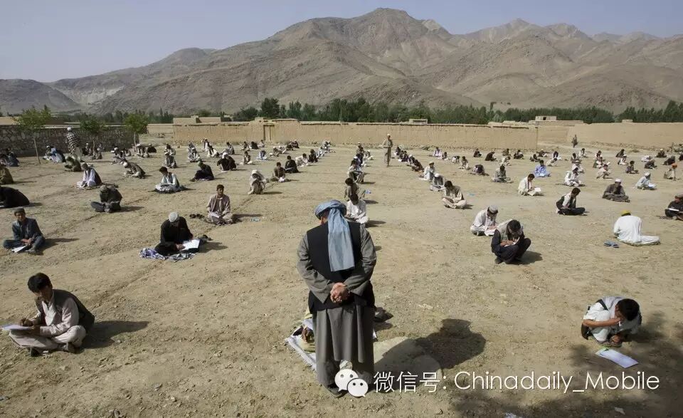 2009年7月7日,阿富汗瓦尔达克省山村里的一名老师正在期末考试上监考