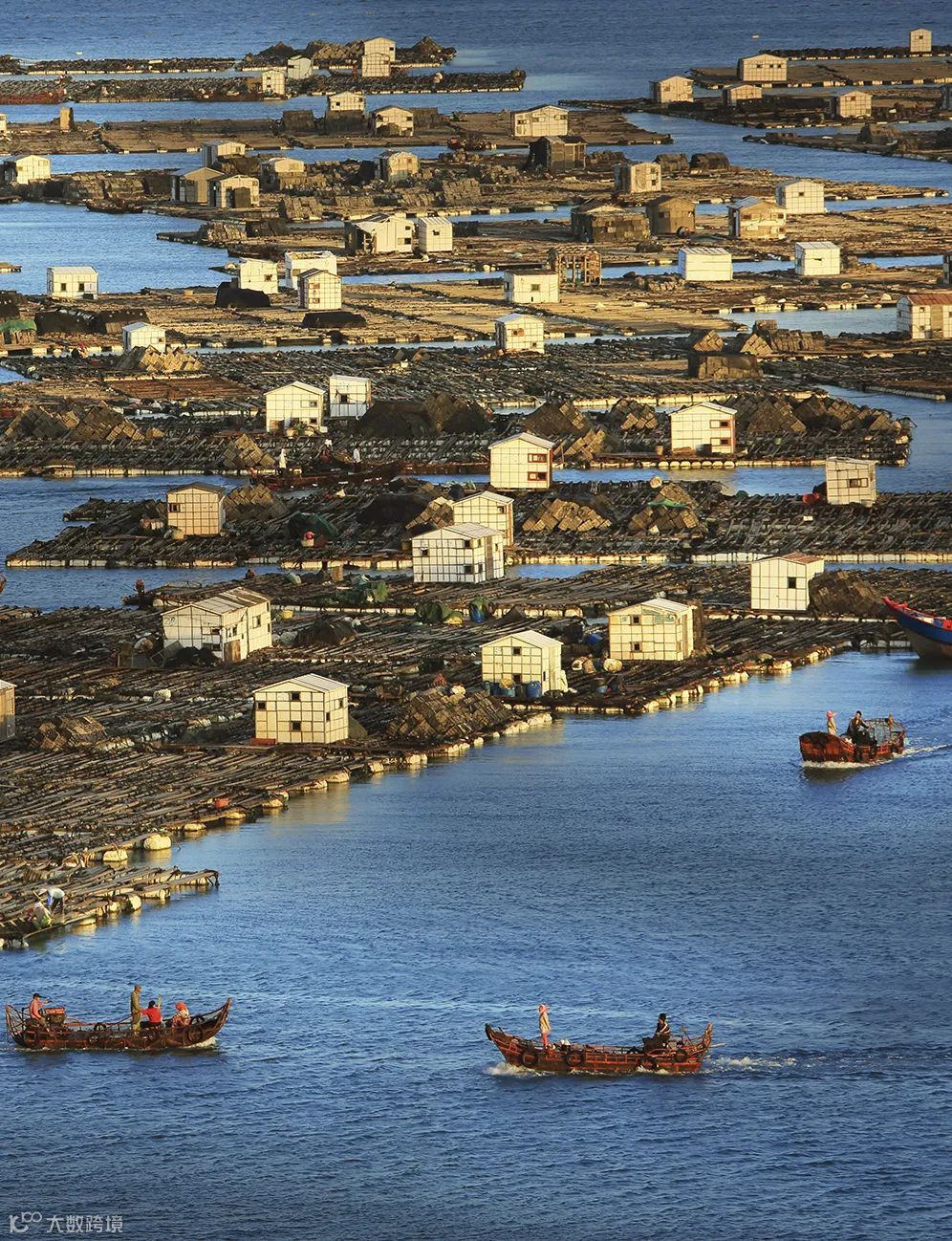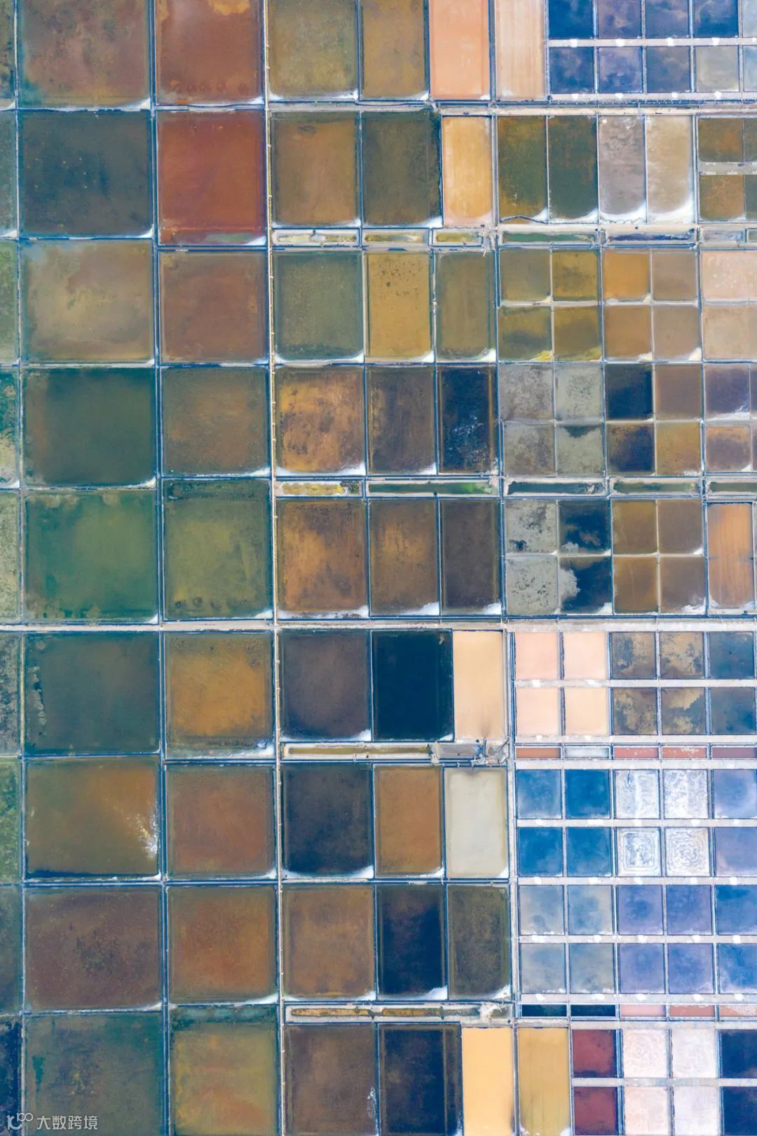 位于平海湾畔,面积1.53万亩,海水引入盐池,由于咸度和蒸发结晶速度的不同,从高空俯瞰,各个盐池呈现出斑斓的色泽。(摄影/许武)