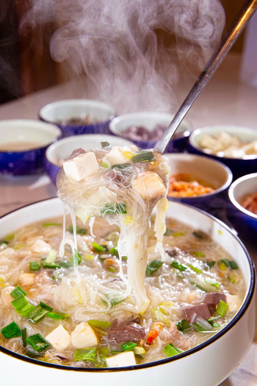 莆田有大年三十吃炝粉的习俗,炝粉里有米粉、线面、海蛎、蛏干、五花肉、豆腐、猪血、香菇等佐料。(摄影/黄立勇|友德大酒店)